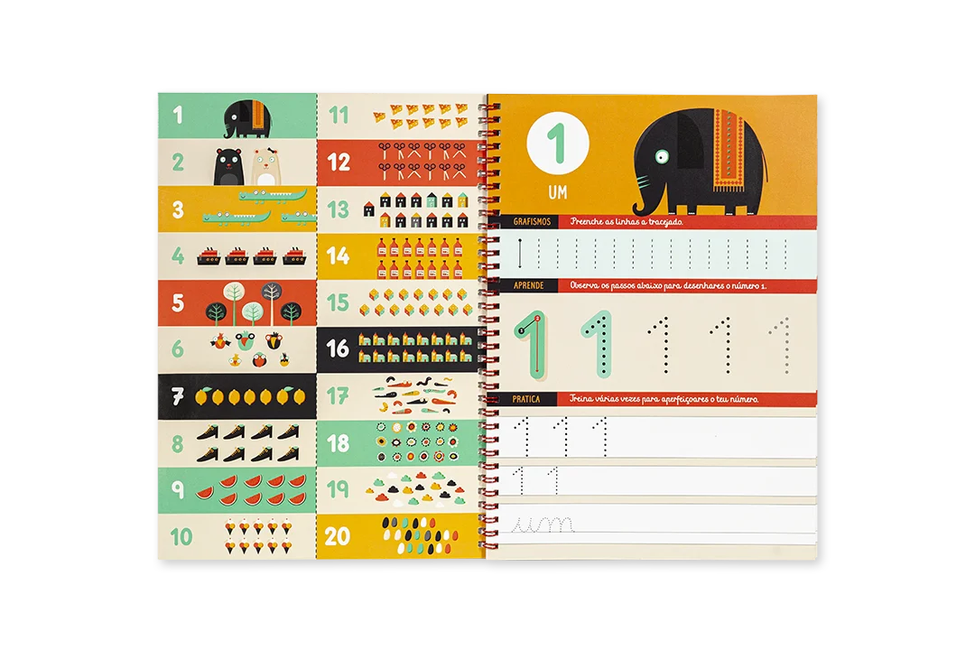 123… e o que vem a seguir? São os números de 1 a 20, que vais aprender e desenhar! Mas não ficamos por aqui: neste caderno há grafismos para treinares, esquemas passo a passo dos números e muitas personagens que vais poder conhecer…