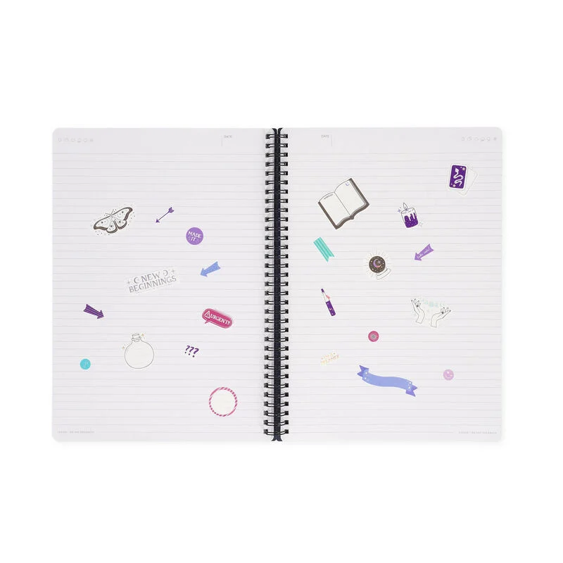 Como diz uma famosa canção americana: “Se você gosta, coloque um anel nele”. E nós amamos tanto o Caderno A5 com espiral e tema Magia da Legami que colocamos várias argolas por toda a encadernação. É a maneira mais prática de guardar teus pensamentos, anotações, autocolantes e estar sempre pronto para virar a página e começar um novo capítulo!