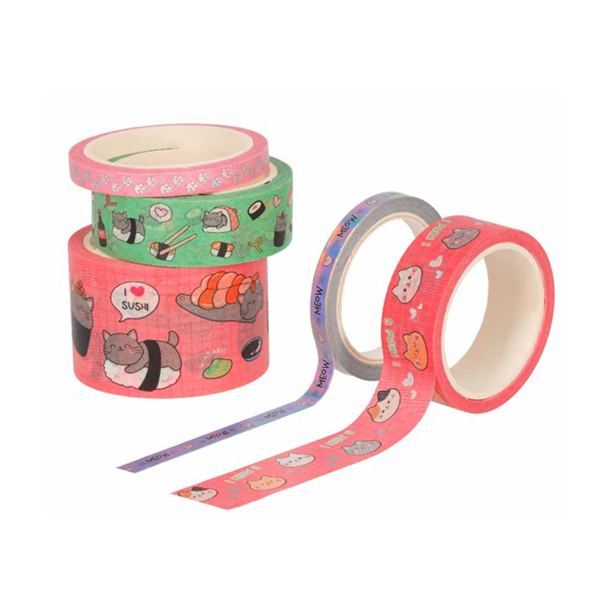 Tape By Tape Kitty da Legami é o conjunto de 5 rolos coloridos de fita washi, cada um com 5 metros, para colar, decorar e personalizar todos os teus acessórios.