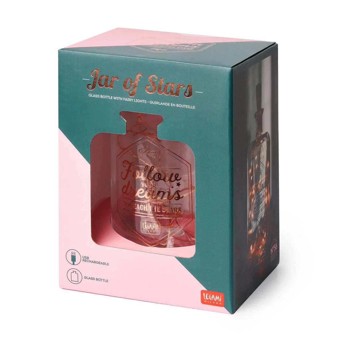 Já imaginou ter uma galáxia ao seu alcance, na sua mesa de cabeceira? O Jar of Stars, da Legami, é uma garrafa de vidro encantada com uma guirlanda de luzes LED, trazendo o brilho das estrelas para sua noite. Compacta, ela carrega facilmente via cabo USB, garantindo que a magia nunca acabe. Apague as luzes e deixe seus sonhos brilharem!