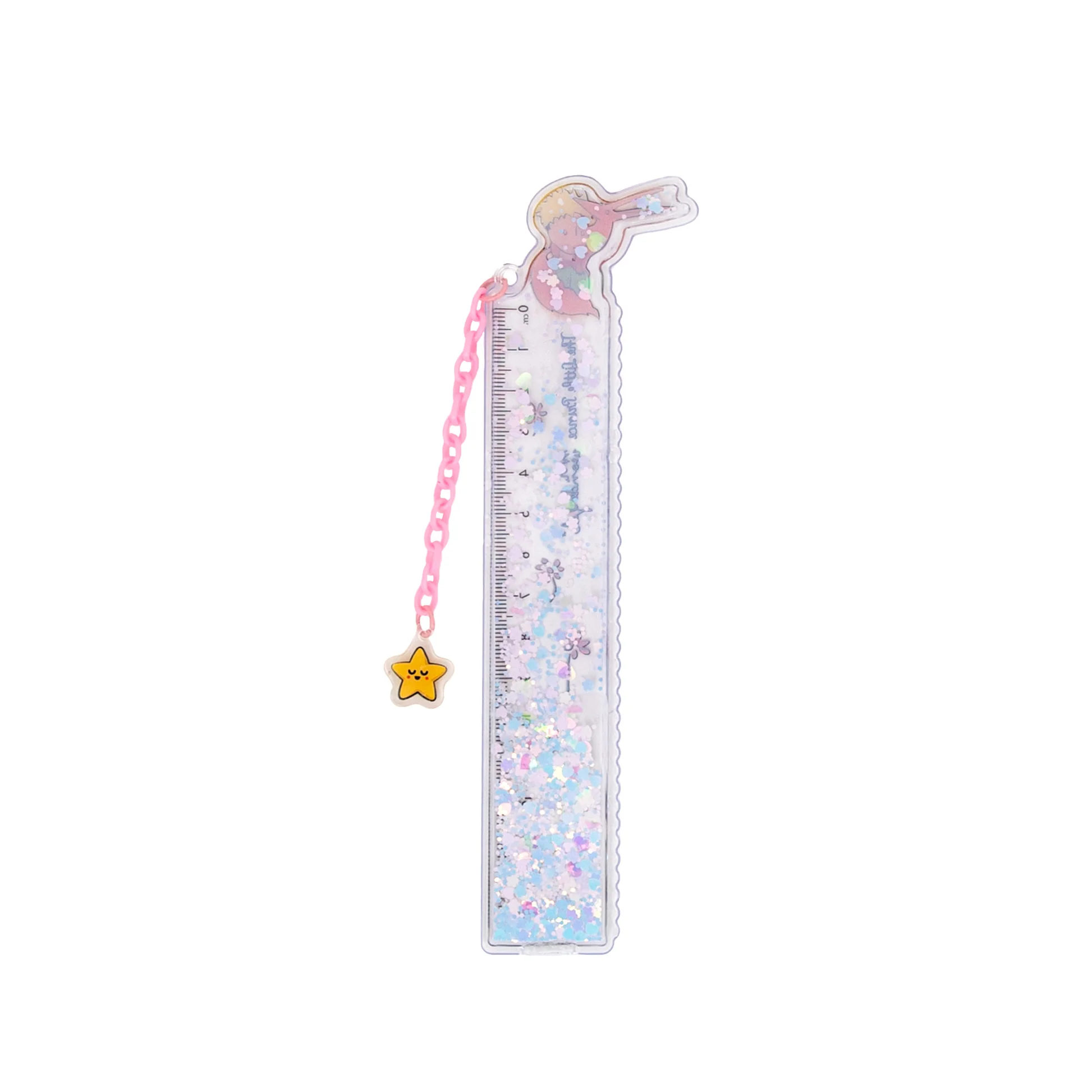 Régua de plástico de 15 cm, pensada para ser usada como marcador de páginas, pois é muito fininha. Pende dela um bonito charm com um dos protagonistas de O Pequeno Príncipe.