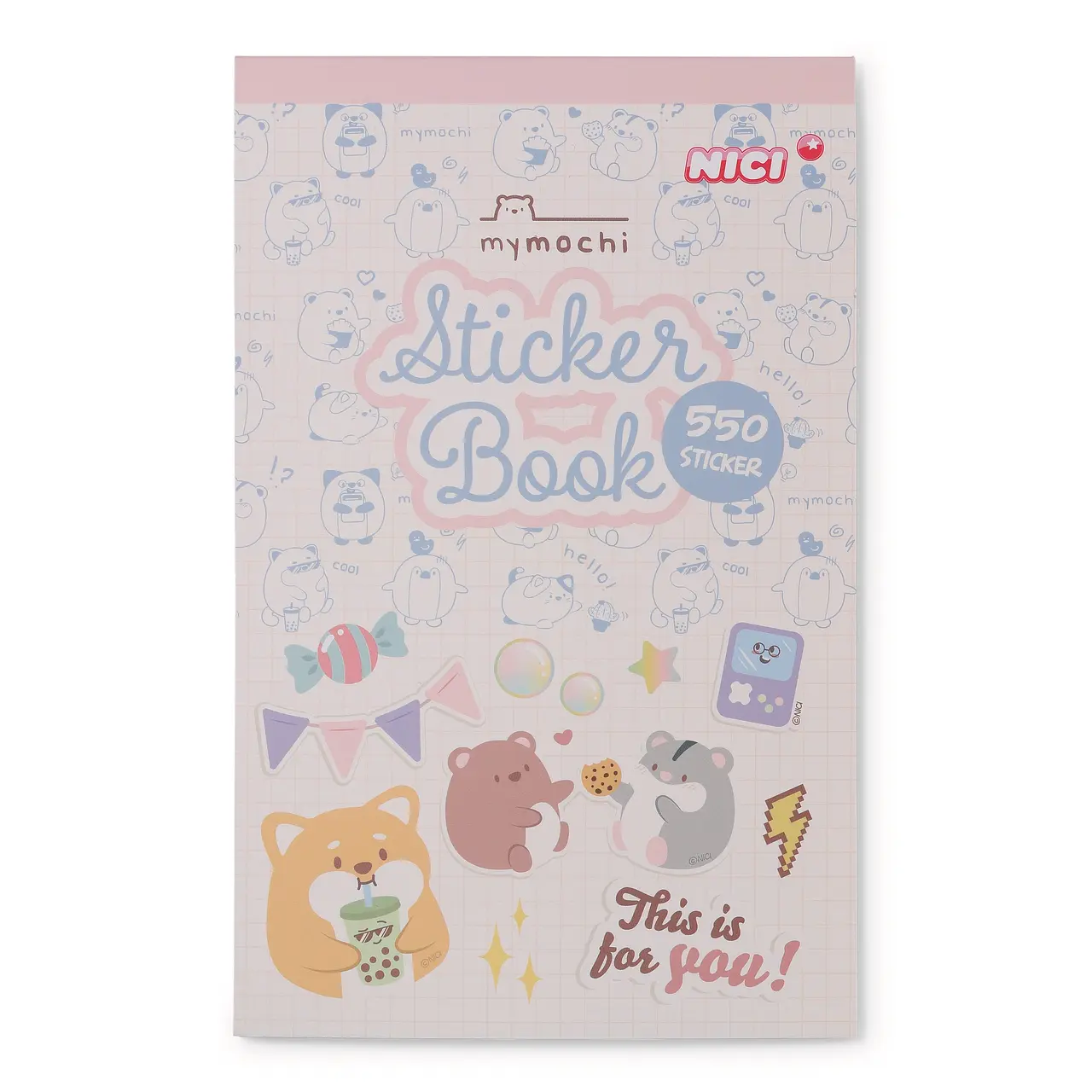 Livro autocolantes Mymochi da Nici com 20 folhas contém 550 autocolantes.