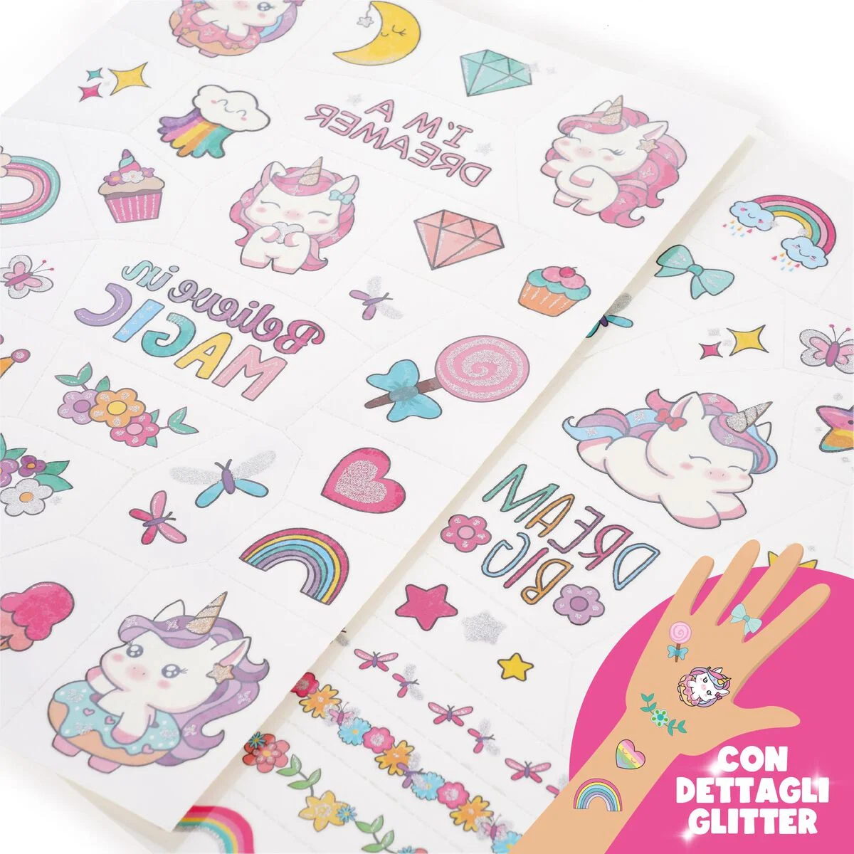 Eis uma Novidade que vais adorar imediatamente… na pele! Estas são as Tatuagens Temporárias Legami – Unicórnios: duas folhas cheias de cor e magia que te permitem mudar o teu estilo com apenas um bocadinho de água. Super fáceis de aplicar, resistentes ao suor e à água, e super suaves para a pele.